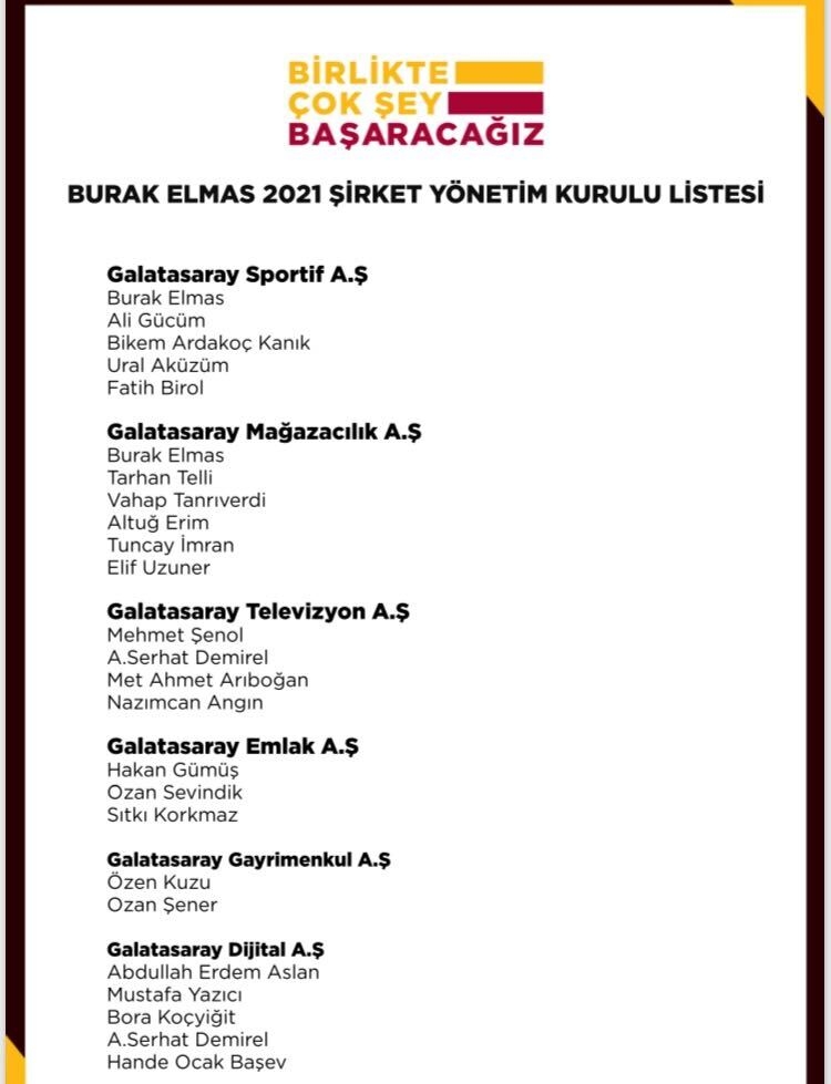 Galatasaray’da lider adayı Burak Elmas’ın listesinde yer alan isimlere Ajansspor ulaştı. İşte Burak Elmas’ın idaresinde yer alacak isimler…