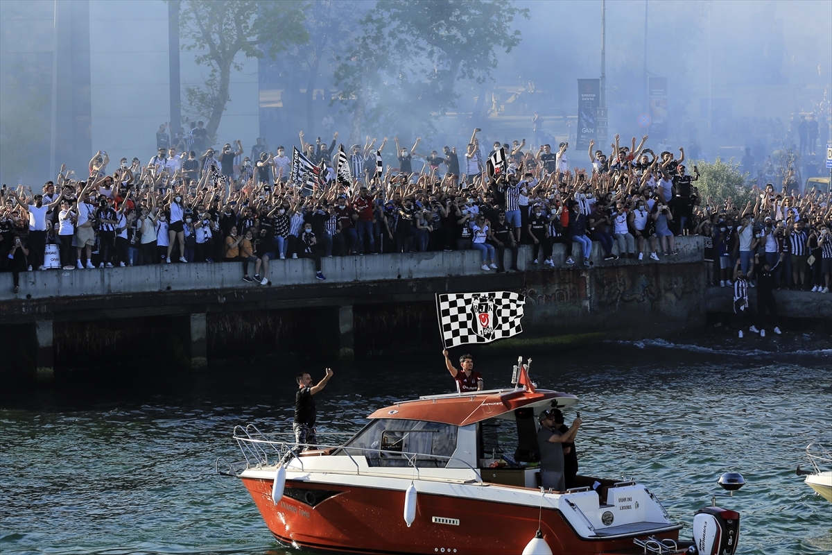 Beşiktaş idare konseyi üyeleri, teknik heyet ve oyuncular, buradan şampiyonluk kupasını almak üzere deniz yoluyla Vodafone Park’a hareket etti. Taraftarlar da teknelerle siyah-beyazlı takımı yalnız bırakmadı. Beşiktaş’ı taşıyan tekneye kıyı güvenlik ve deniz polisi de eşlik etti.