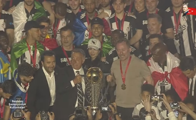 Vodafone Park’taki yerini alan az sayıdaki siyah-beyazlı taraftar kadrolarına büyük tezahüratta bulundu. Gecenin finalinde şampiyonluk kupası Beşiktaşlı futbolcuların elinde havaya kalktı. Hem yöneticiler, hem Sergen Yalçın ve teknik grup hem de siyah-beyazlı oyuncular verdikleri aile fotoğrafıyla bütün bir dönemin yorgunluğunu attı.