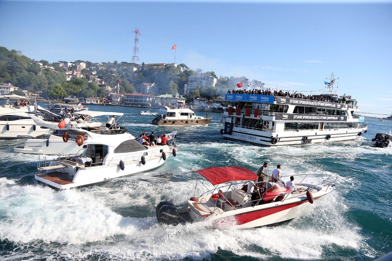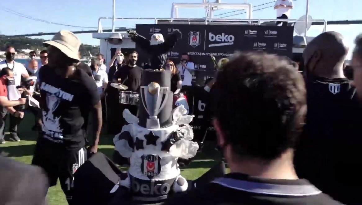 Beşiktaş idare konseyi üyeleri, teknik heyet ve oyuncular, buradan şampiyonluk kupasını almak üzere deniz yoluyla Vodafone Park’a hareket etti. Taraftarlar da teknelerle siyah-beyazlı takımı yalnız bırakmadı. Beşiktaş’ı taşıyan tekneye kıyı güvenlik ve deniz polisi de eşlik etti.