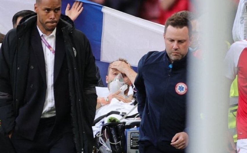 Eriksen, kadro arkadaşının sol kanattan taç atışını kullandığı 42. dakikada kendisini yere bıraktı. Olay sonrası alana giren sıhhat takımları, 29 yaşındaki futbolcuya kalp masajı yaptı.