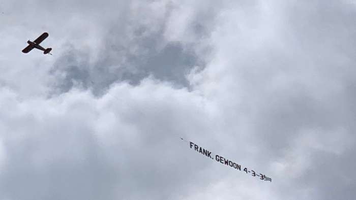 Kadronun çalışmalarını sürdürdüğü antrenman alanının üzerinden uçan küçük bir uçak, kuyruğuna asılı pankartla “Frank. Yalnızca 4-3-3” yazısını taşıdı. Bu teknik yönetici Frank De Boer’in çok tenkit alan 3-5-2 taktiğine bir göndermeydi.