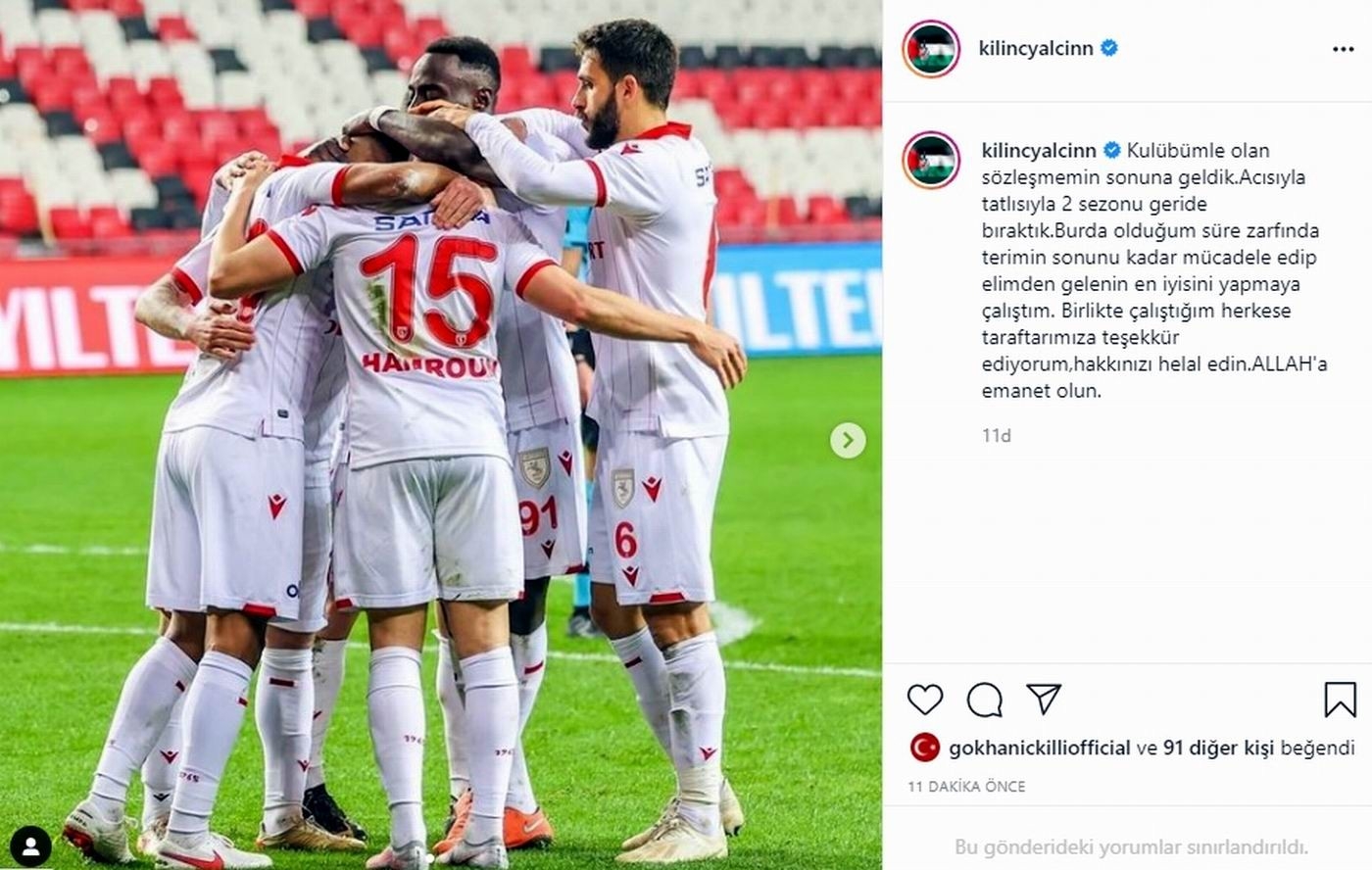 Son olarak resmi hesabından açıklamalarda bulunan 33 yaşındaki Yalçın Kılınç, Samsunspor’dan ayrıldığını açıkladı.